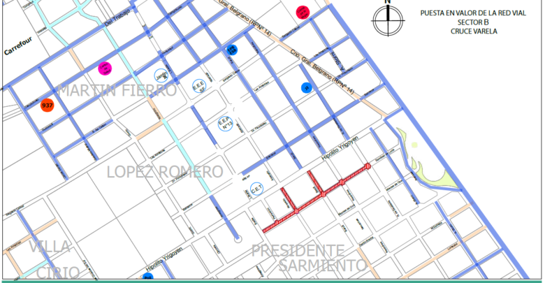 Los trabajos prevén mejorar la transitabilidad de uno de los circuitos viales más importantes del distrito y el acceso al centro comercial del Cruce Varela.