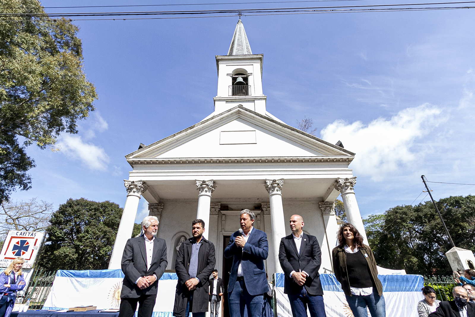 La Plaza Eva Perón de Ministro Rivadavia, frente a la Iglesia de Nuestra Señora del Tránsito, fue el escenario de la emotiva celebración del 150° aniversario de esa, la localidad más antigua de Almirante Brown. Mariano Cascallares y el intendente de Almirante Brown, Juan Fabiani, encabezaron los actos junto a vecinos, vecinas, excombatientes e instituciones de bien público de nuestro distrito.