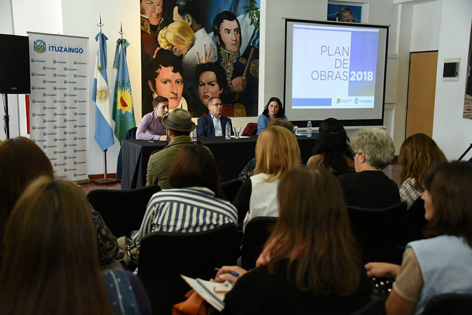 El Intendente Alberto Descalzo junto a la Presidenta del Consejo Escolar de Ituzaingo, Marcela Cabadas y el Secretario de Planificación, Desarrollo Urbano y Ambiente, Martín Rossi, presentó el plan de obras de reacondicionamiento para instituciones educativas del distrito a partir del acuerdo entre la Dirección General de Cultura y Educación, el Municipio y el Consejo Escolar.