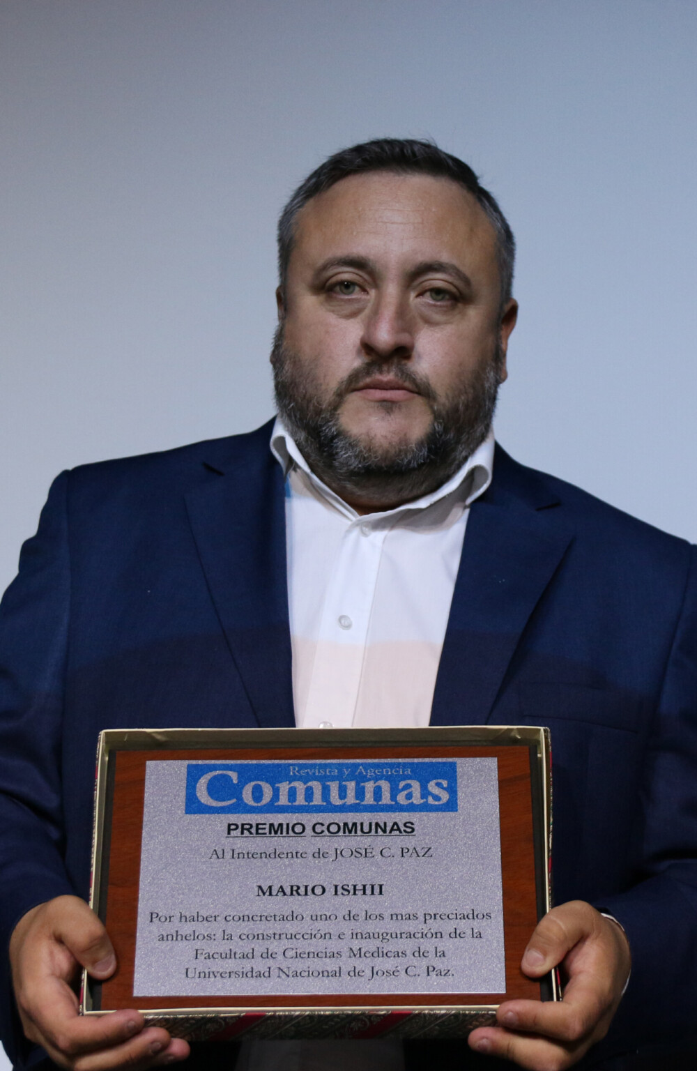 Juan Pablo Mansilla, Jefe de Gabinete de José C Paz representó a Mario Ishii en la entrega de los Premios Comunas. El jefe comunal fue destacado por la construcción e inauguración de la Facultad de Ciencias Médicas en su distrito y durante la pandemia.
