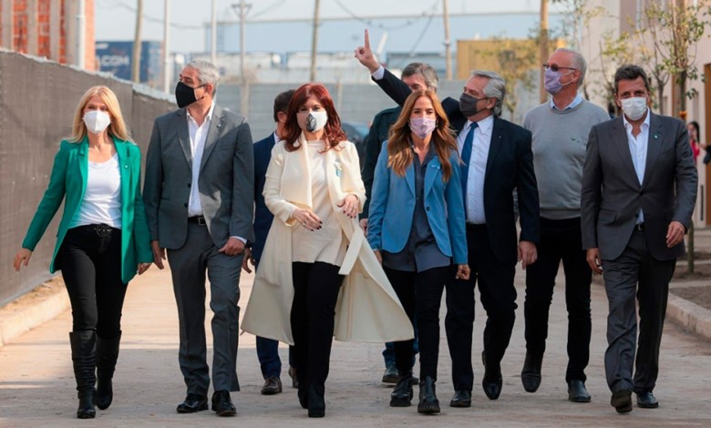 Este martes, el Presidente y la vicepresidenta Cristina Fernández de Kirchner compartieron un acto en el barrio Isla Maciel, en la localidad bonaerense de Dock Sud, en Avellaneda, que contó con la asistencia de los principales referentes de la alianza gobernante.