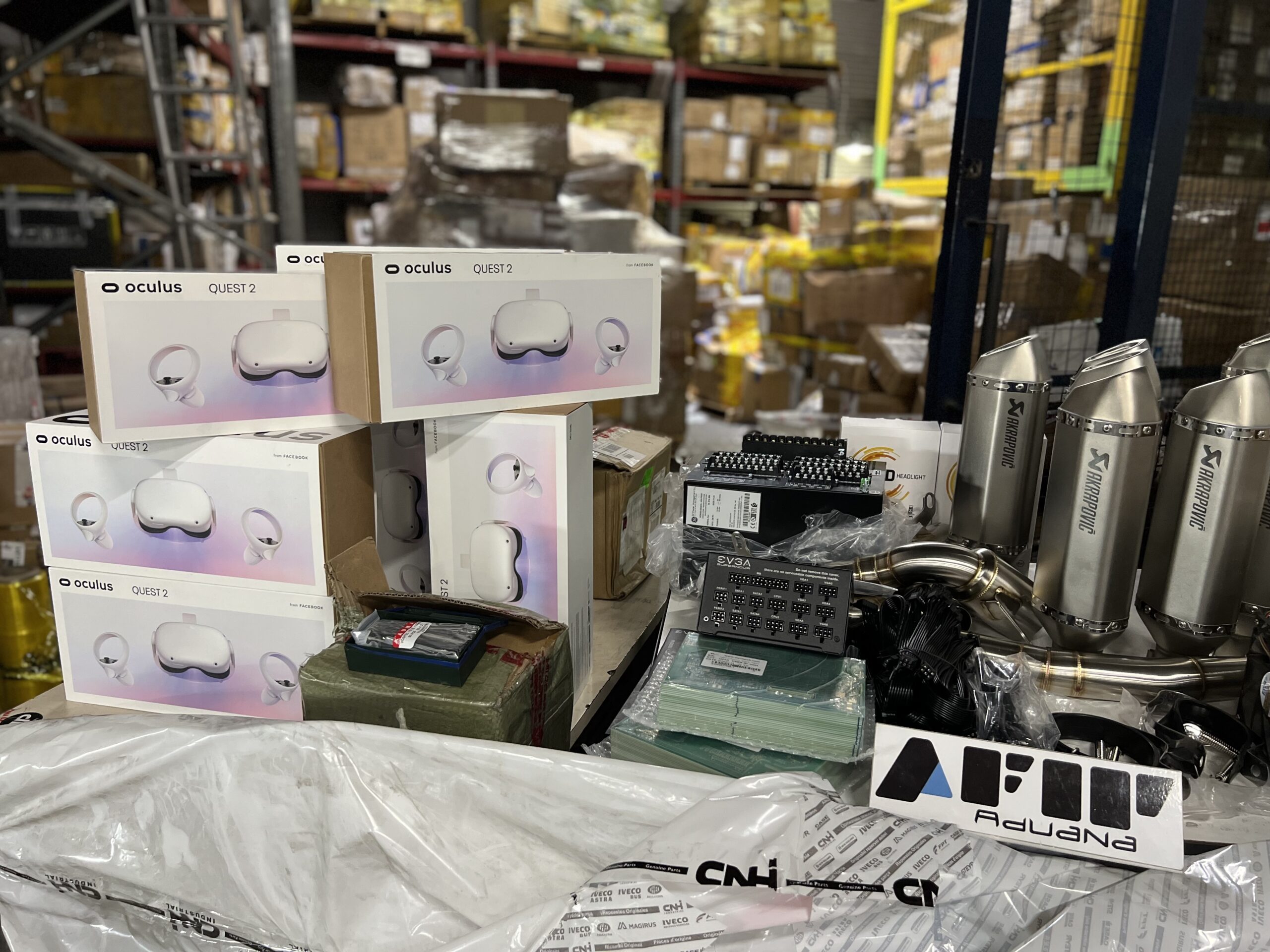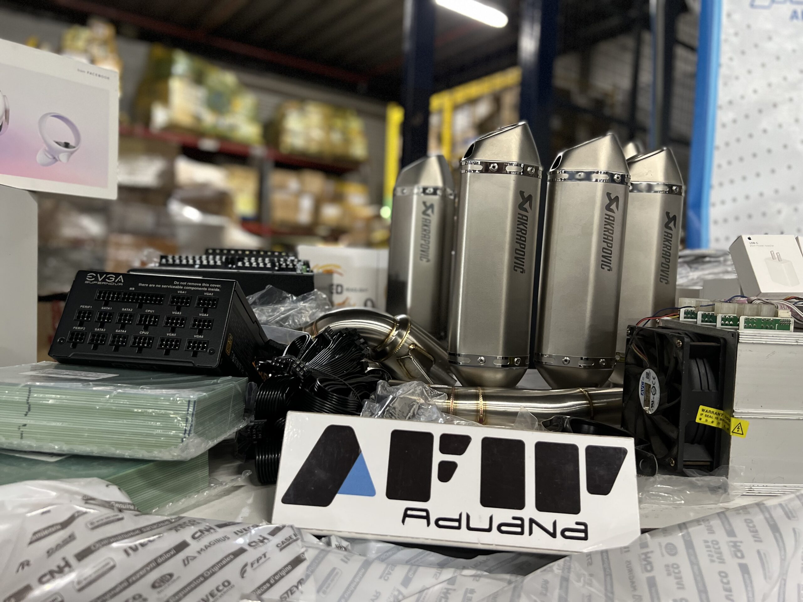 > Entre la mercadería, que provenía principalmente de China y EE.UU., había dispositivos de realidad virtual, placas para minado de criptomonedas, notebooks, auriculares, cargadores de celulares, e, increíblemente, caños de escape de motos y repuestos de automóviles.