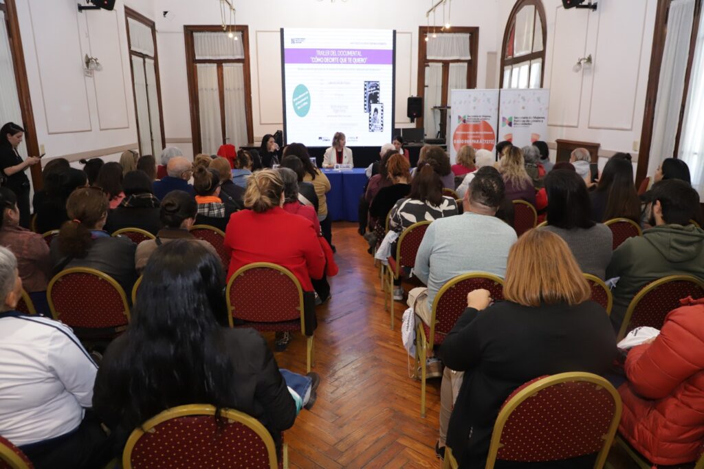 La secretaria de las Mujeres, Políticas de Género y Diversidades, Liliana Hendel, y la subsecretaria de Derechos Humanos, Eva Soto, junto a la doctora Carolina Escudero, presentar en el Salón Malvinas del Palacio Municipal, el trailer del documental “Como decirte que te quiero” que se estrenó este jueves en el cine Goumont y toca el tema de “Relatos sobre la apropiación de bebés en España durante y después del franquismo”.