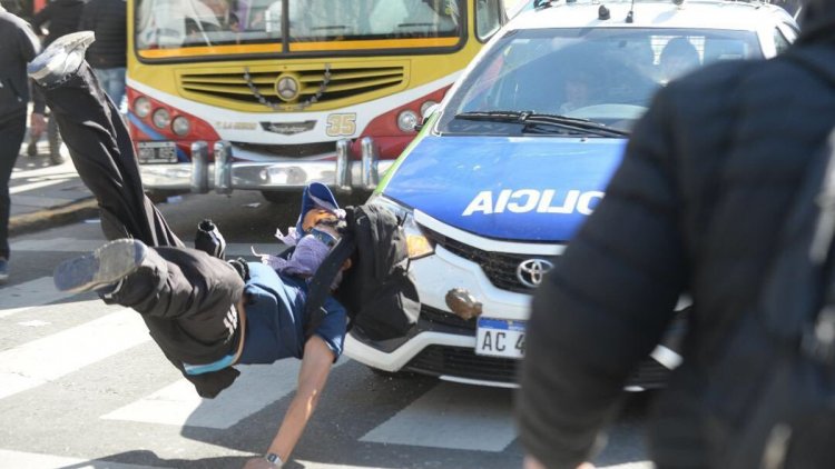 Los manifestantes, que se habían concentrado a las 7.30, marcharon primero desde el astillero hasta el Ministerio de Economía y luego se dirigieron a la sede del Poder Ejecutivo para repudiar los recortes y el eventual cierre de la empresa, pero las columnas fueron interceptadas por los uniformados en los alrededores de la Plaza San Martín, entre las calles 7 y 50, y no pudieron continuar.