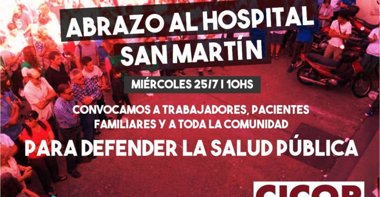 Este miércoles 25 de julio los trabajadores y las trabajadoras del Hospital San Martín de la ciudad de La Plata, ubicado en la calle 1 y 70, realizan un abrazo simbólico al edificio central a partir de las 10 hs en el marco del paro convocado por la Asociación Sindical de Profesionales de la Salud de la Provincia de Buenos Aires (CICOP) contra el “ajuste” y la “falta de presupuesto” que vive la salud pública.