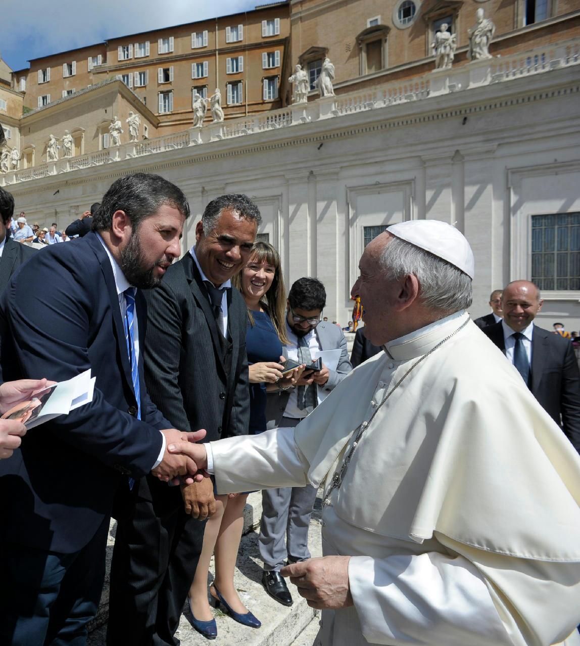 Un contingente representando a la “Red de líderes generacionales de América latina y el Caribe”, fue recibida por el Papa Francisco en audiencia en la Plaza San Pedro. Integraron dicha comitiva, la diputada provincial María Laura Ramírez (La Matanza) y el concejal José Luis Barreiro (Moreno), quienes retornaron a Roma, luego de la reunión papal que tuvieron en diciembre del 2014.