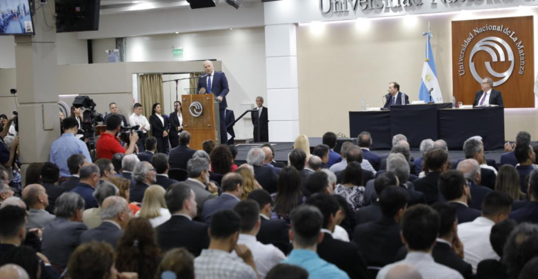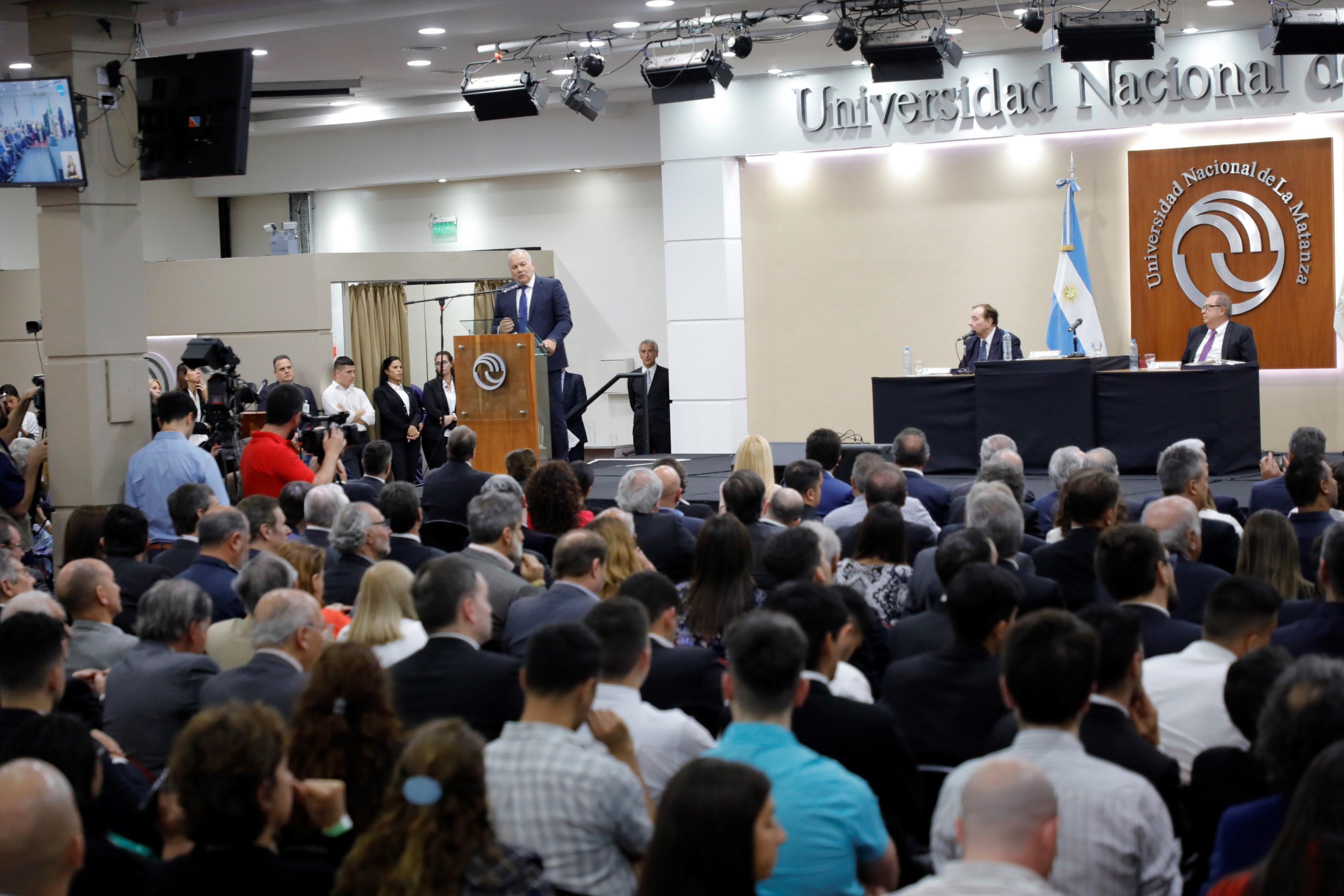 La ceremonia, además, contó con discursos del vicerrector Víctor René Nicoletti, y del ex Rector Pinelli. Entre los invitados especiales se encontraron la intendenta Verónica Magario; el diputado Fernando Espinoza, los ex gobernadores bonaerenses Daniel Scioli y Felipe Solá, y el director de Editorial Perfil, Jorge Fontevecchia, entre otras personalidades.