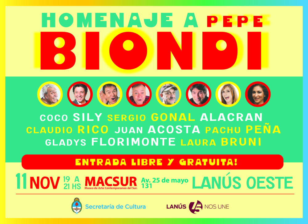 La Secretaría de Cultura del Municipio de Lanús llevará adelante un homenaje a Pepe Biondi, uno de los más grandes cómicos del país, oriundo de Remedios de Escalada.