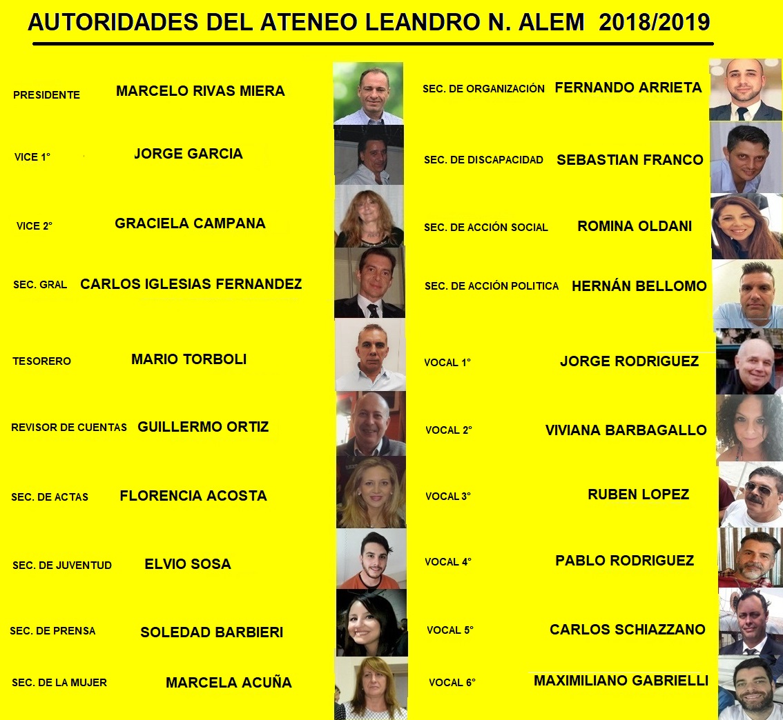 Como desde hace 20 años ininterrumpidos, se renovó la mesa directiva del Ateneo Leandro N. Alem, continuando su conducción a cargo del actual presidente del H.C.D. de Lanús, Marcelo Rivas Miera.
