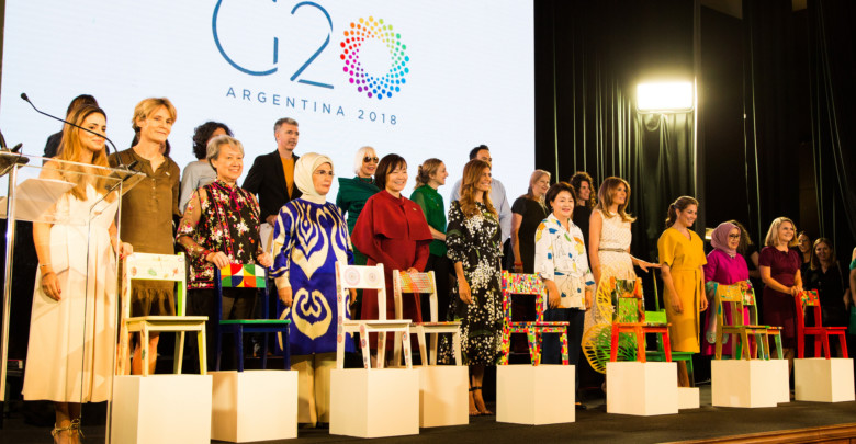 Juliana Awada, la esposa del presidente Mauricio Macri, la “primera dama”, escribió: “Hoy en nuestro encuentro, convoqué a las acompañantes de los líderes del G20 a redoblar los esfuerzos en nuestro trabajo por la primera infancia. Junto a artistas reconocidos de Argentina intervinimos sillitas para los Espacios de Primera Infancia de todo nuestro país”.