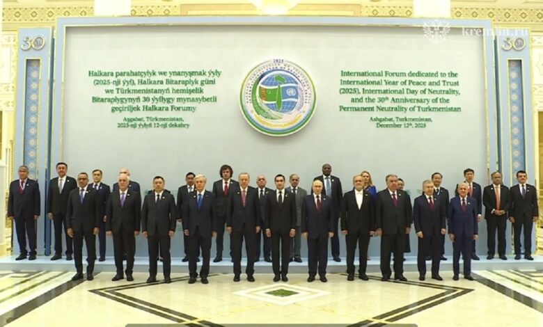 El evento que se celebra en Asjabad, este 12 de diciembre, está dedicado al Año Internacional de la Paz y la Confianza, el Día Internacional de la Neutralidad y el 30.º aniversario de la declaración de neutralidad permanente de Turkmenistán.