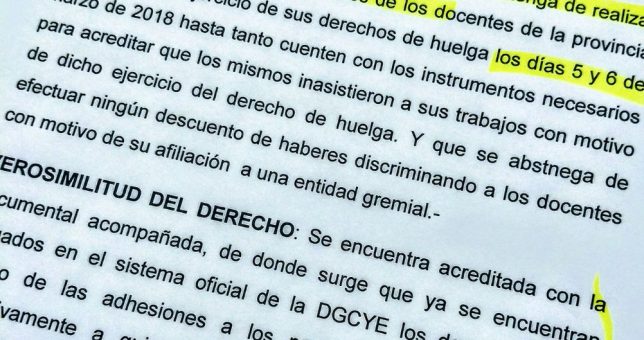 El escrito, también incluye, el pedido para que las autoridades bonaerenses no puedan realizar ningún otro descuento, hasta tanto no se resuelva la cuestión de fondo: la Paritaria Salarial Docente.