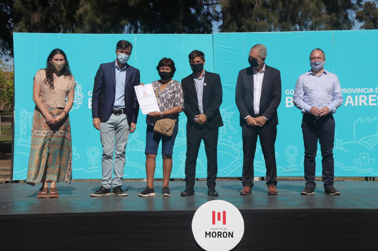 Además, en la entrega los acompañaron el ministro bonaerense de Justicia y Derechos Humanos, Julio Alak; la diputada nacional Mónica Macha y el ex intendente y actual presidente de ACUMAR, Martín Sabbatella, quien desde el Estado local en 2003 comenzó un proceso de urbanización importante en diferentes zonas de Morón, principalmente en el barrio Carlos Gardel.