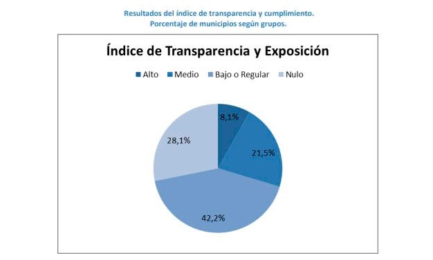 Solo 11 municipios llegan a un nivel alto en el índice de transparencia y exposición, 29 a nivel medio, 57 a nivel bajo o regular y los restantes 38 a un nivel nulo de información