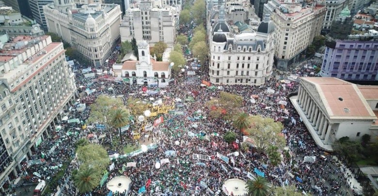 movilización a la Plaza de Mayo, con el acompañamiento de Camioneros, gremios opositores y movimientos