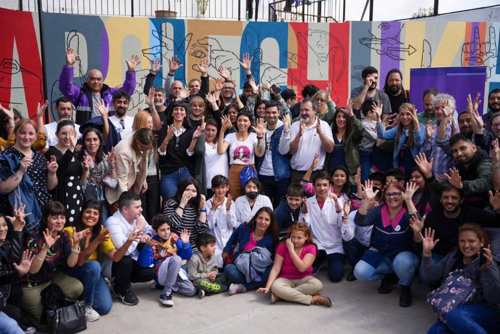 Por su parte, la secretaria de Niñez y Desarrollo Social, Florencia Di Tullio, indicó que el mural es producto de la articulación de muchas áreas, “principalmente con la mano de obra de la Dirección de Muralismo de la Secretaría de Culturas y Deportes, y también en articulación con la Dirección General de Discapacidad de nuestra Secretaría, en el marco del Día Nacional de las Personas Sordas que se conmemora cada 19 de septiembre porque en 1885 fue la creación del primer Instituto Nacional para las Personas Sordas”.