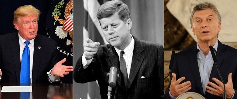 Por su parte, otro que de santo solo tuvo su imagen fue JFK. El católico presidente asumió en 1960, en el 62 agrandó el bloqueo económico hacia Cuba, fracasó en la Bahía de los Cochinos y en 1963, 10 meses antes de su muerte, mandó a bombardear Vietnam del Sur, autorizó el uso de napalm y la guerra química para destruir cosechas de alimentos y cobertura terrestre para la resistencia indígena e inició los programas para enviar a millones de survietnamitas a lo que en la práctica eran campos de concentración. Una joyita. El resto de los presidentes que sucedieron a la actualidad tampoco fueron candidatos a suplir a San pedro en el cielo. Obama, premio Nobel de la Paz luego de lanzar 28 mil bombas en medio Oriente, Bush padre e hijo con su guerra imperial partiendo de guerras preventivas o sea la mentira en cadena por los medios dominantes y el actual Donald Trump quizás protagonista de la tercer guerra mundial y Macri de aliado del poder que nos somete. Esta es la realidad, la única verdad.