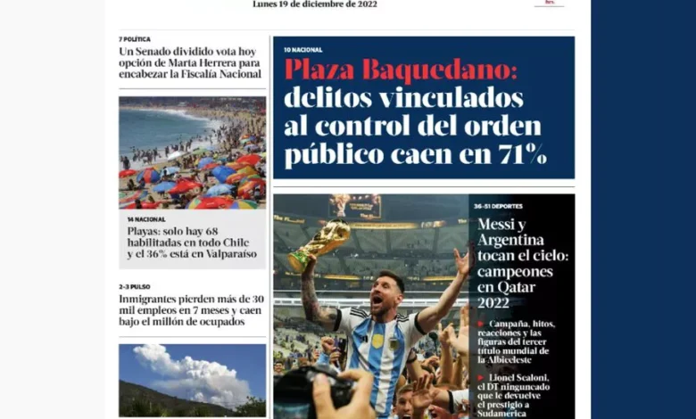 La Tercera: «Messi es el dueño del mundo: Argentina toca el cielo 36 años después en una final inolvidable».