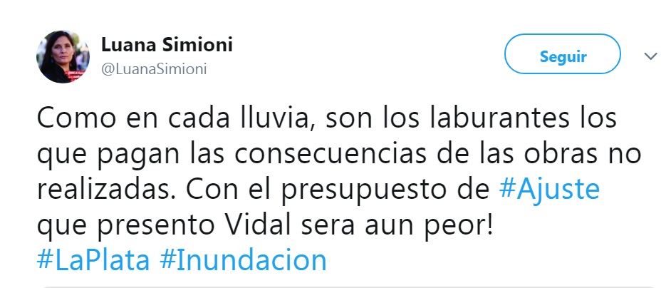 Este distrito no resiste un día de lluvia de fuerte. No se puede naturalizar la inundación, mucha mucha gente la está pasando mal.