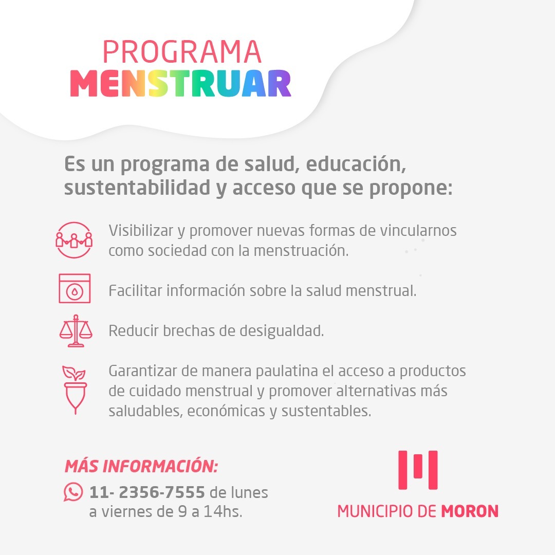 Esta iniciativa busca brindarle a la comunidad información sanitaria y garantizar, de manera paulatina, el acceso equitativo a productos de cuidado y menstruación para reducir las brechas de desigualdad, ya que, según el sondeo de la Dirección de Géneros y Equidad del Municipio de Morón, el costo de 24 toallitas higiénicas al mes varía entre $160 y $350, lo que genera un gasto anual de entre $1920 y $4200 por persona.