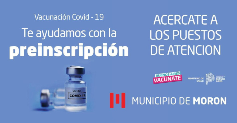 Como cada semana, el Municipio de Morón dispone de mesas de asistencia en diferentes puntos del partido, con el fin de asistir a los vecinos y vecinas que necesiten ayuda en la preinscripción de la vacuna contra el Covid-19 del Ministerio de Salud de la Provincia de Buenos Aires (vacunatepba.gba.gob.ar).