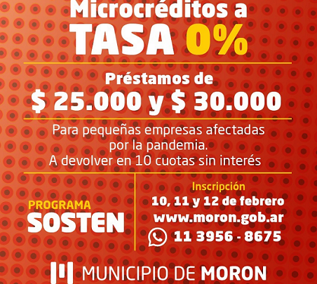 El Municipio de Morón lanza la cuarta convocatoria del Programa SOSTÉN, el cual a través de microcréditos a tasa cero de $25.000 y $30.000 pesos, busca promover el crecimiento y reducir el impacto económico ocasionado por la pandemia de Covid-19 en las pequeñas empresas del distrito.