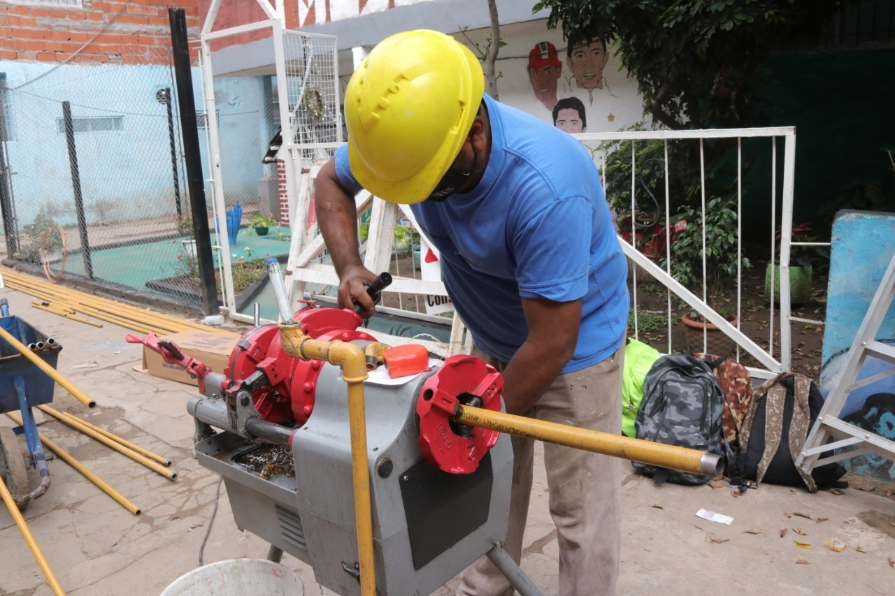 Las tareas implican una nueva instalación domiciliaria en cada una de las 1172 unidades funcionales del Complejo, con cañería reglamentaria a la vista desde nuevos nichos para medidores hasta la distribución interna de cada vivienda.
