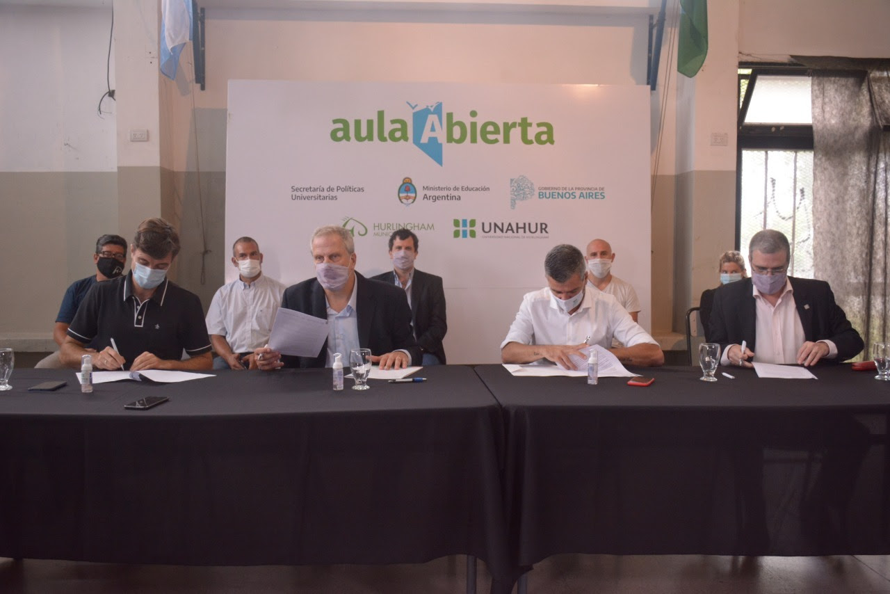 Estuvieron presentes el intendente de Hurlingham, Juan Zabaleta, el secretario de Políticas Universitarias del Ministerio de Educación de la Nación, Jaime Perczyk y el rector en ejercicio de la UNAHUR, Walter Wallach.