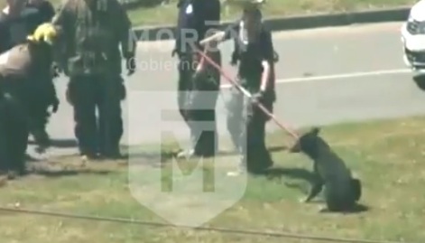 Rápidamente, los gendarmes se comunicaron con el Centro de Operaciones y Monitoreo de Morón, desde donde un operador registró los sucesos desde un domo 360° y se activó el protocolo correspondiente para su pronto salvataje. Rápidamente arribaron al lugar los Bomberos Voluntarios, quienes en breves minutos salvaron al canino devolviéndole su libertad, dejándolo sano y salvo.