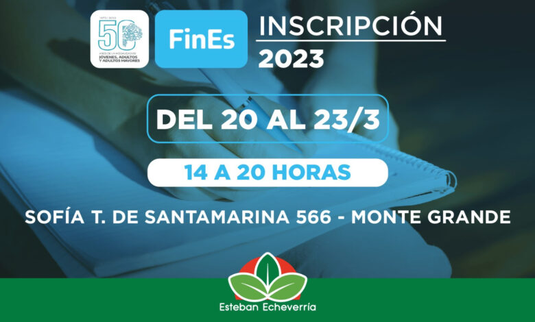 El Municipio de Esteban Echeverría extendió una semana la inscripción al Plan FinEs 2023 destinado a personas mayores de 18 años que quieran finalizar sus estudios primarios y secundarios o rendir materias adeudadas.