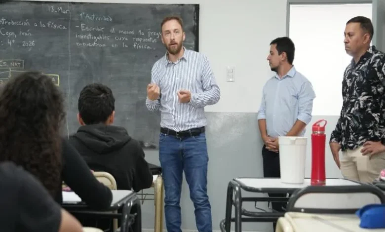 El intendente visitó la institución junto al secretario de Educación de Lomas, Darío Spampinato. Durante la recorrida conversó con el director de la escuela, Pablo Stancovic, y con los y las estudiantes.