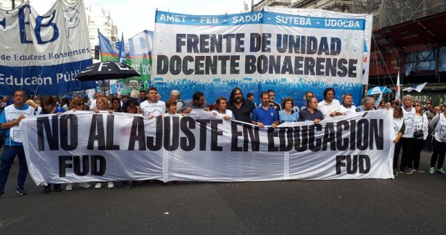Los docentes de la provincia de Buenos Aires, reunidos en el Frente de Unidad Docente, realizaron la huelga con la consigna “¡Basta de Ajuste, la educación pública no puede esperar!.”