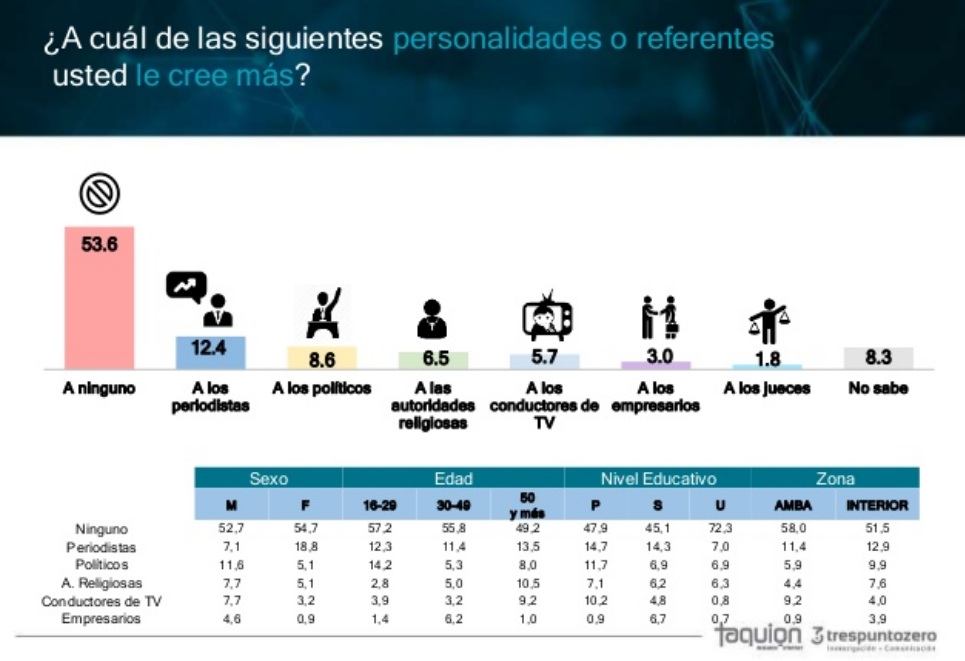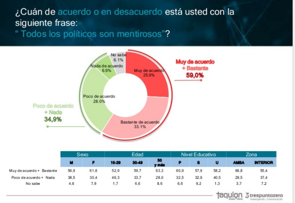 • La crisis de representación se expresa en que 6 de cada 10 argentinos no le cree a nadie, ni a políticos, periodistas, autoridades religiosas, jueces, etc.