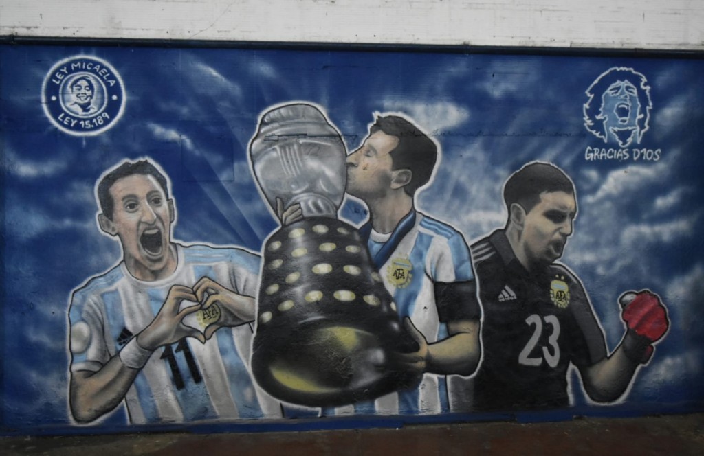 “El gol de Di María, la imagen de Messi con la Copa y las atajadas de Dibu Martínez son recuerdos que jamás olvidaremos”, escribió en Twitter Russo en referencia a la obra plasmada sobre una de las paredes del Club Social y Deportivo Siglo XX, una de las instituciones más emblemáticas de Remedios de Escalada Este. El mural lleva la firma de la agrupación “Lanús Iluminada” y contiene la imagen del goleador de la final ante Brasil, del astro del combinado nacional y del arquero revelación de la Copa América y figura de la semifinal ante Colombia.