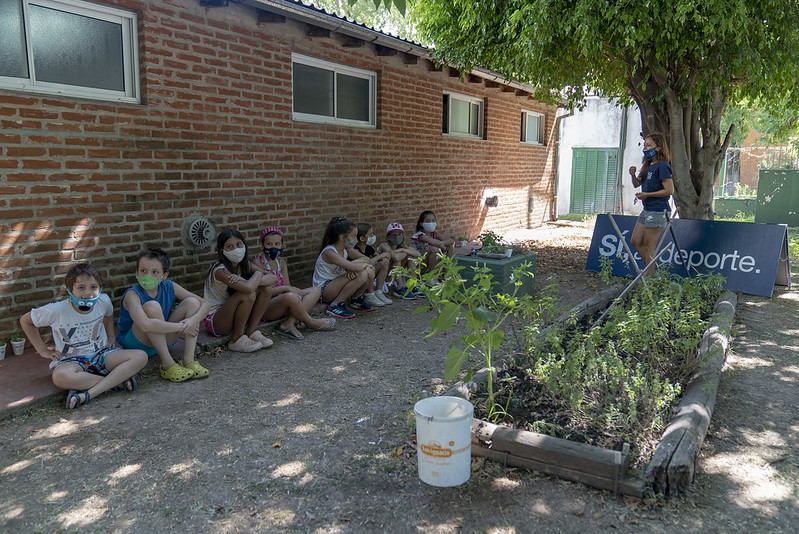 En los campos de deportes municipales chicos y chicas aprenden a reciclar y crear huertas.