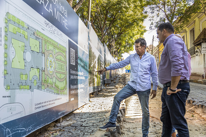 “Es una obra histórica, que quedará en la memoria para siempre. Esta plaza es parte de la identidad de San Isidro y queremos que recupere el esplendor que tenía en los años ’50, con sus elementos originales y auténticos. En breve comenzarán las obras finales para que todos los vecinos puedan volver a disfrutar de este lugar emblemático”, señaló Posse, tras recorrer el tramo de obras en la calle Ituzaingó, que se encuentra cerrado al tránsito.