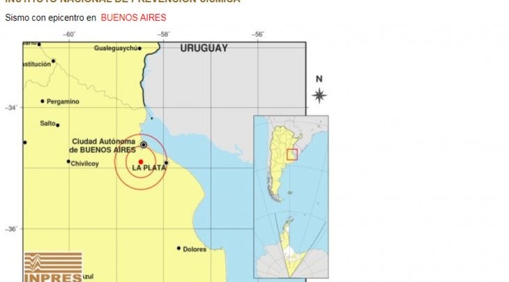 El Instituto Nacional de Prevención Sísmica (INPRES) informó que detectó un movimiento sísmico de 3,8° en la escala Richter en los alrededores de la ciudad de La Plata. El epicentro se dio 32 kilómetros al Sur de la Ciudad de Buenos Aires y tuvo una profundidad de 25 kilómetros, según el mismo organismo.