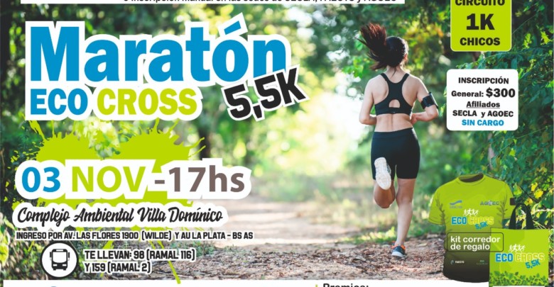 El sábado 3 de noviembre será un día diferente para los vecinos de Avellaneda, Lanús y alrededores, ya que se estará corriendo la ECO CROSS 5,5K en el complejo ambiental de Villa Domínico que pertenece a la CEAMSE. El evento es abierto a toda la comunidad y comenzará a las 17 horas, con entrada libre y gratuita para los afiliados al SECLA y AGOEC. Habrá premios para las diferentes categorías, estadías turísticas, sorteos, sorpresas y más. El evento cuenta con el patrocinio y organización del Sindicato de Empleados de Comercio de Lanús y Avellaneda (SECLA), junto al AGOEC, el gremio que agrupa a los trabajadores del Medio Ambiente, junto con la Federación Argentina de Empleados de Comercio y Servicios (FAECyS) y la Coordinadora Ecológica Área Metropolitana Sociedad del Estado (CEAMSE).