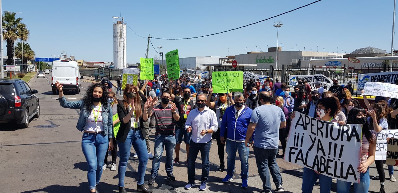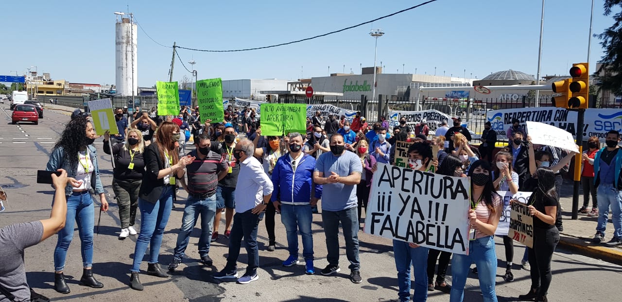 El Sindicato de Empleados de Comercio de Lanús y Avellaneda que encabeza Pedro Orlando Machado se manifestó en las puertas del Alto Avellaneda Shopping Mall con la finalidad de solicitar la reapertura del centro comercial, bajo el correspondiente protocolo de higiene y seguridad sanitaria, en pos del regreso a sus puestos de trabajo de cientos de compañeros afectados en sus tareas por la cuarentena dispuesta por por el gobierno a raíz de la pandemia de Covid-19.