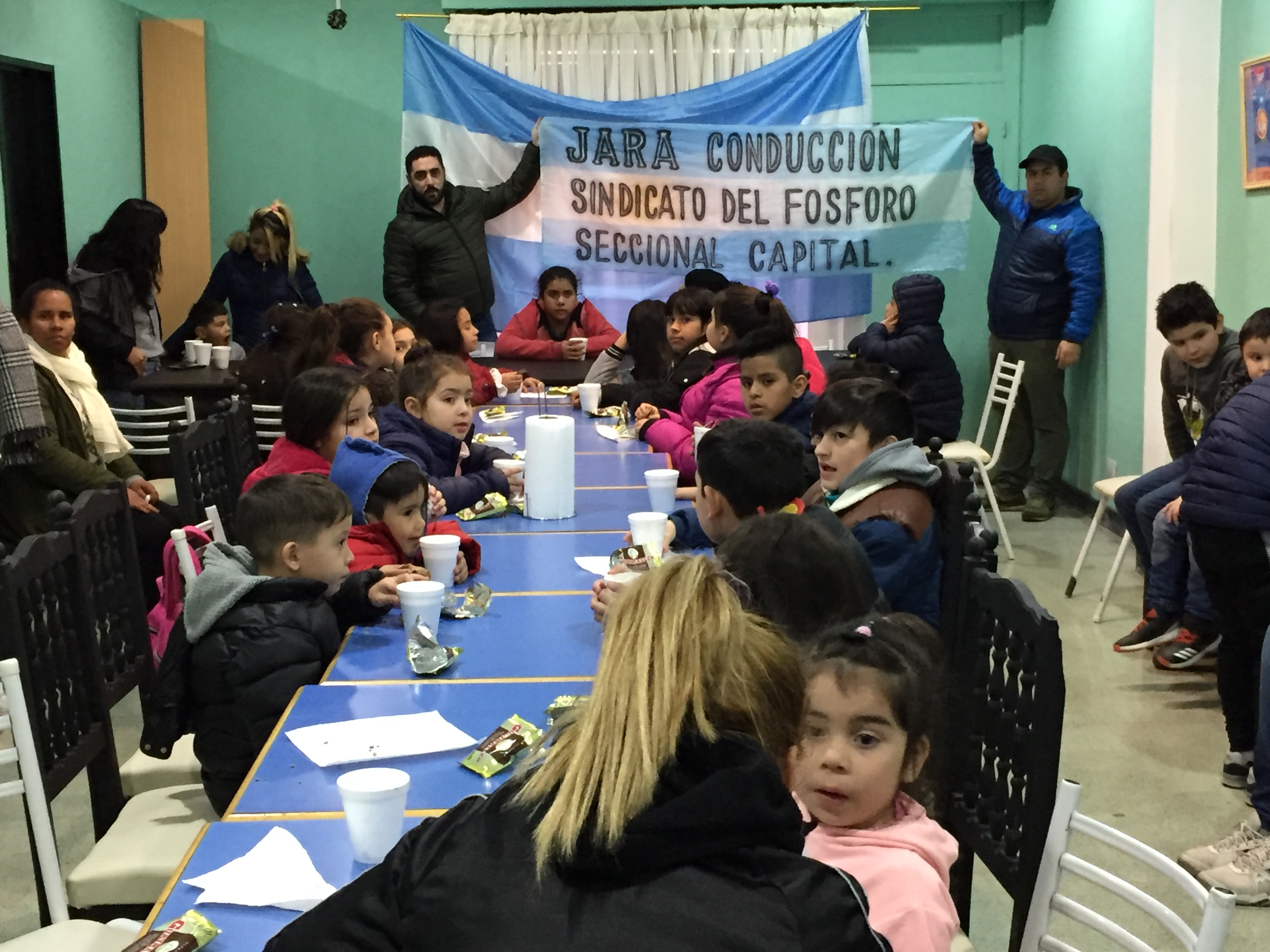 Después del cine pasamos por la sede de nuestra organización para tomar todos un exquisito chocolate caliente, junto a nuestro Secretario General Clay Jara Toledo y el referente del gremio en Bajo Flores y zona aledaña, Carlos Castro.