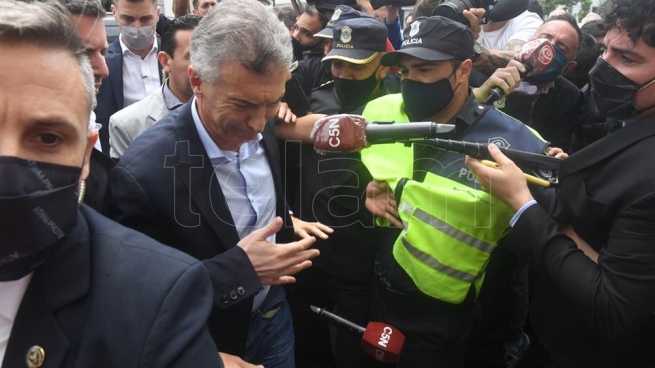 El miércoles, durante el ingreso al juzgado federal de Dolores para prestar declaración indagatoria en el marco de la investigación por supuestas maniobras de espionaje hacia los familiares de las víctimas del hundimiento del submarino Ara San Juan, el exmandatario le arrebató el micrófono a un cronista de C5N.