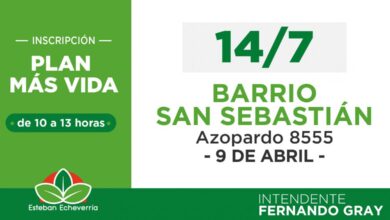 ESTEBAN ECHEVERRIA: Inscripción este viernes al Plan Más Vida en barrio San Sebastián