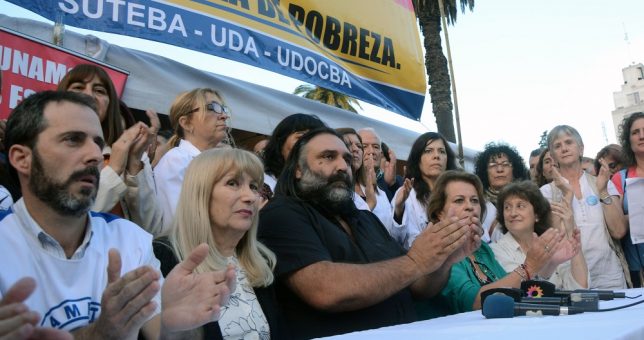 “No solamente el gobierno de María Eugenia Vidal tiene un ensañamiento con los docentes. El Ministro de Educación nacional (por Alejandro Finocchiaro) no se manifiesta cuando hay muchas provincias que no han cerrado paritarias. Entendemos que el gobierno nacional y el gobierno provincial se han ensañado con los docentes porque no nos callamos la boca y decimos lo que pensamos. No nos van a imponer que firmemos una pauta salarial a la baja de los trabajadores”, concluyó.
