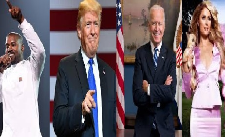 Pero aquí no termina el espectáculo; cuando se cree que una ola de aplausos lo respalda, pega un salto sobre el escenario el famoso rapero Kanye West con una banda presidencial que le sostiene por detrás su voluptuosa mujer Kim Kardashian; el músico a su vez se ve reemplazado en la escena por una mujer que parece un maniquí de cera con un impecable vestuario y maquillaje; es la modelo y actriz: Paris Hilton también aspirante a sacar de la escena a Trump. Detrás de ella, se arma una fila de otros personajes que por el mismo motivo se pelean lugar, para dar un puntapié final a quien yace en el suelo destrozando el libro “Demasiado y nunca es suficiente”, de su sobrina Mary Trump, donde lo acusa de “crueldad e incompetencia, y de inclinación a la mentira y el engaño …